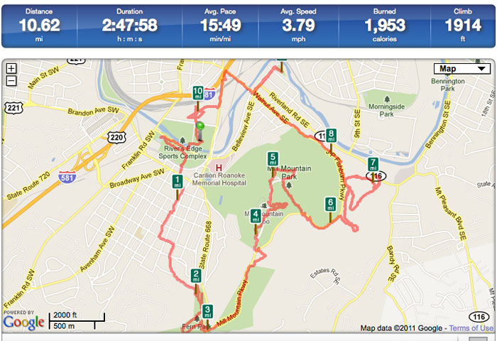 At the end of the day we covered 10.6 miles in just under 3 hours. The terrain included city streets, hiking trails and everything in between. Nestled among nearby rolling hills and the rising Blue Ridge Mountains, Roanoke is an ideal location for a scenic romp through the Fall foliage.