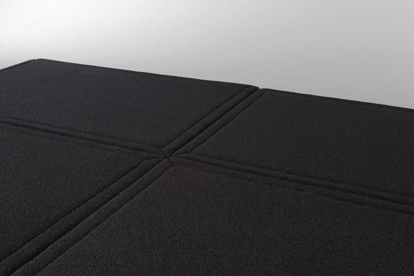 The UBL soft loop fabric wraps around to the back of each panel, creating a picture framed strip of soft loop to interface with our attachment method of two included 12” strips of 2” wide Velcro adhesive-backed hook. You can choose to permanently mount these hook strips by removing the plastic backer, or leave the backer intact and staple them to a wall for a non-permanent attachment.