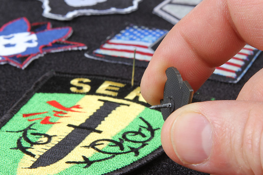 This made in Texas MMS is a 12” x 18” panel made from 3/16” foam that’s bonded to an HDPE plastic backer before being covering with UBL soft loop fabric and stitched down. This creates a surface that you can press a pin into to hold your embroidered patches that might not have a hook backing to interface with the soft loop surface of the panel.