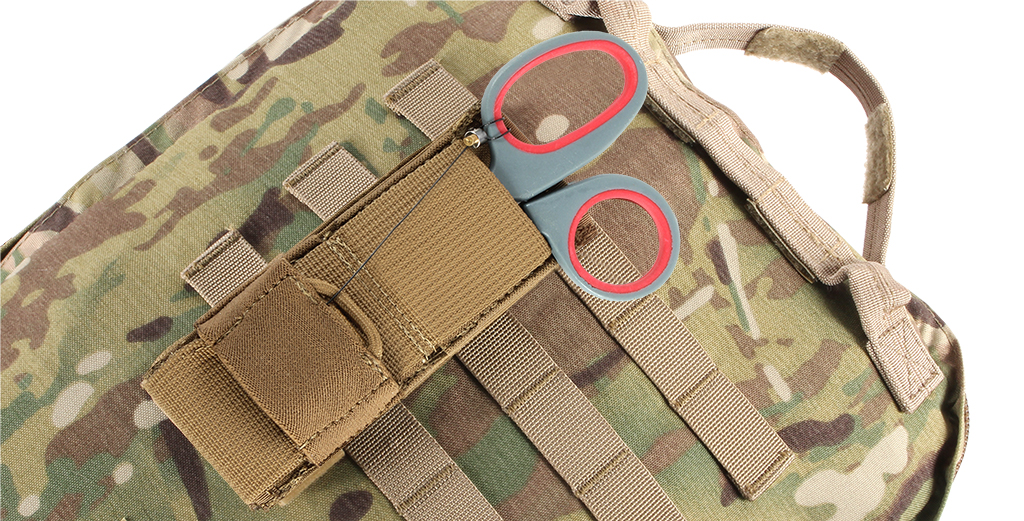 The ITS SHARP™ (Shears Holster and Retention Pouch) provides limitless mounting potential to enable quick access and up to two levels of retention for your trauma shears.
