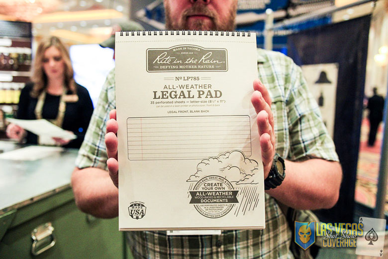 –1006– New legal pad from Rite in the Rain which is off white and perforated at the top for a clean tear off. The back is blank and can be used in a home laser printer. ^ES