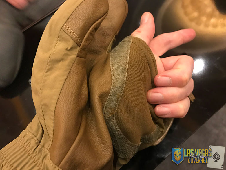 –1316– Outdoor Research’s Swoop Mitt Shell allows a shooter to have the advantages of mittens, but be able to slide his or her entire hand through the fingers opening to shoot, then retract into the mitten again. ^MNS