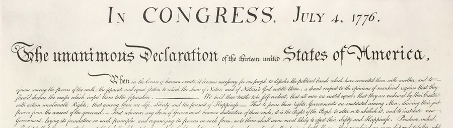 We hold these truths to be self-evident, that all men are created equal, that they are endowed by their Creator with certain unalienable Rights, that among these are Life, Liberty and the pursuit of Happiness. — That to secure these rights, Governments are instituted among Men, deriving their just powers from the consent of the governed, — That whenever any Form of Government becomes destructive of these ends, it is the Right of the People to alter or to abolish it, and to institute new Government, laying its foundation on such principles and organizing its powers in such form, as to them shall seem most likely to effect their Safety and Happiness.