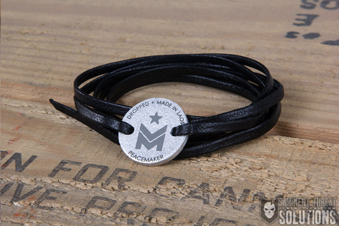 The Peacemaker Coin Wrap is made of UXO, war scrap and lambskin. The lightweight metal disc features the Combat Flip Flops logo and the inscription “Dropped and Made in Laos” to remind the wearer of the history of what’s being worn. The lambskin leather wrap ties around the wrist making it completely adjustable to fit anyone.