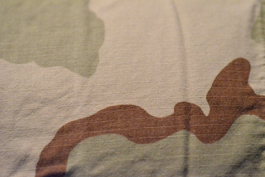 The DCU pattern, comprised of three colors, was developed to address the needs of desert conflicts that had less rocky and more open battlefields. It was first issued as an experimental test pattern in 1989. Soil samples from Saudi Arabia and Kuwait were used to determine the colors in the DCU pattern, which was also known by the nickname “coffee stain camo,” due to its appearance.