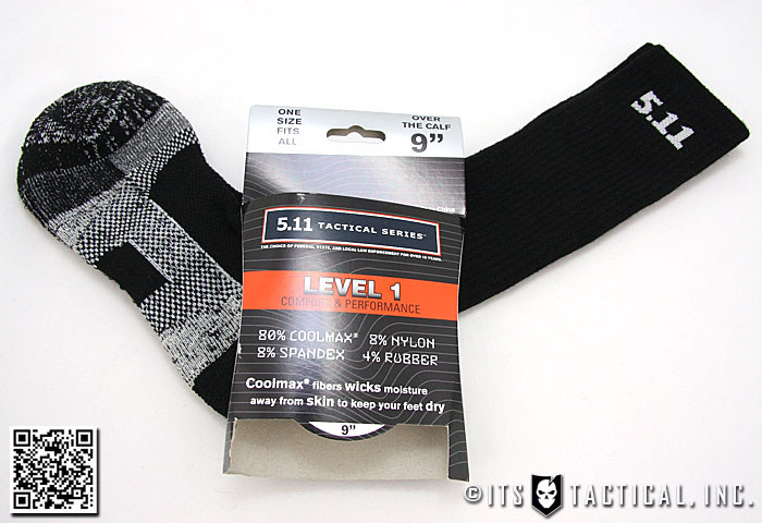 The first thing that I noticed about the 5.11 Level 1 socks were how long they were, I guess I didn’t notice that I had the 9″ “over the calf” socks, rather than the 6″ socks. They should be called “over the knee” socks though, as that’s where the “one size fits all” socks came to on me. I mention this just to mention it, not to take away from the review of these, as 5.11 makes a 6″ version as well. The 9″ just isn’t for me.