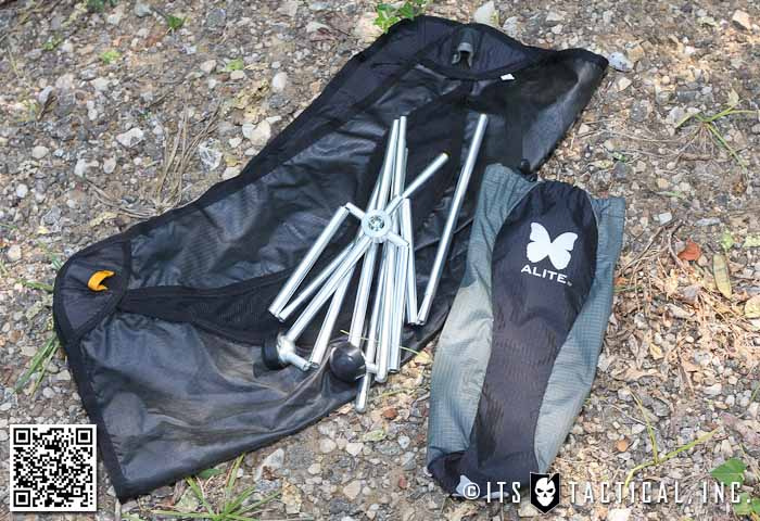 The ALITE Monarch Chair is a breeze to assemble, disassemble and repack. To assemble the chair, just pull the rolled chair cover out of the stuff sack and remove the folded pole. A quick shake will even assemble most of the pole and the other sections snap together quite easily. Simply insert the gold tipped ends into the corresponding gold colored points on the chair cover and the others into the grey colored points.