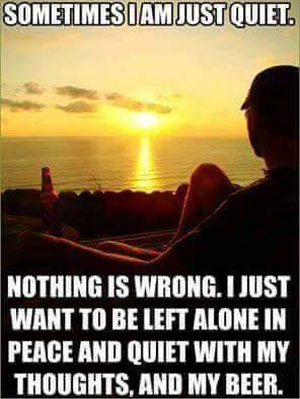 It seems so simple, but people really do have a hard time understanding this. This is exactly what happened to me and sent me off on a very long walk in the woods to get my perspective back. People meant well, but when you simply walked off to a quiet spot with a beer by yourself they constantly wanted to know, “What’s wrong with you?”