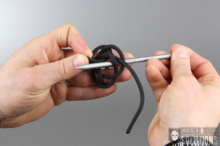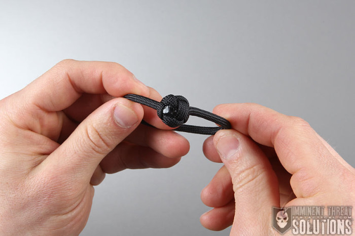 - Grasp the working ends and fixed loop and pull, forming the lanyard knot