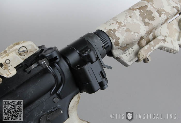 While the adapter does add about 1 3/4″ to the overall length of the AR, this is offset by not needing to extend your stock out as far to maintain a good extension and cheek weld.
