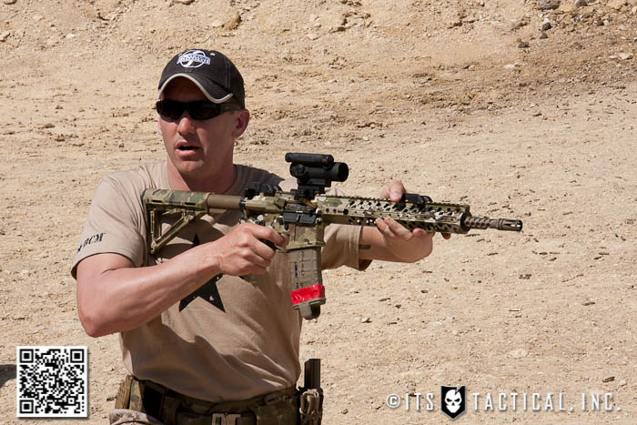 For the Carbine course I used our recent DIY AR-15 Build build which is built around a Bravo Company mid-length upper, 14.5″ barrel and a permanently attached BattleComp 1.5″ compensator. The lower is an ITS logo engraved Spikes Tactical with a Stag Arms lower parts kit. The furniture is all Magpul with a Daniel Defense 9″ Lite Rail. Optics consisted of an Aimpoint T-1 on a LaRue LT-660 mount. As I’m getting into learning more about Night Vision, I ran a Laser Devices DBAL-I2 on the rail to tweak the position relative to my hand placement. My Surefire Scout light was attached with an Impact Weapons Components / Haley Strategic Thorntail Adaptive Light Mount which I can’t say enough good things about, look for a full review of the Adaptive Light Mounts coming soon to ITS.