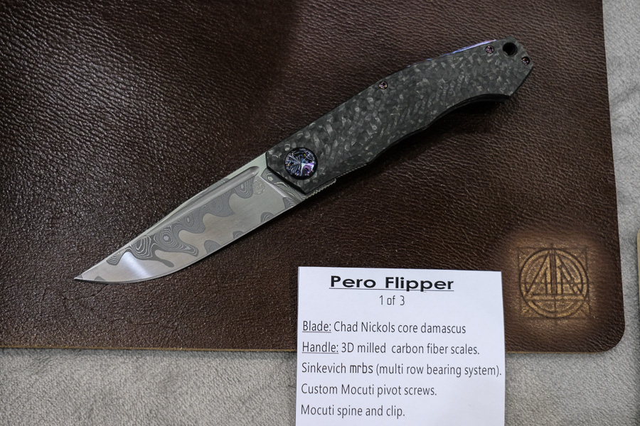 I was also able to check out the new One-Eyed Jack model designed by A.T. Barr. It looks like a piece of art and won’t scare anyone anyone when opened, but it’s a hard working EDC kind of knife. The manufacturing quality of this one is outstanding!