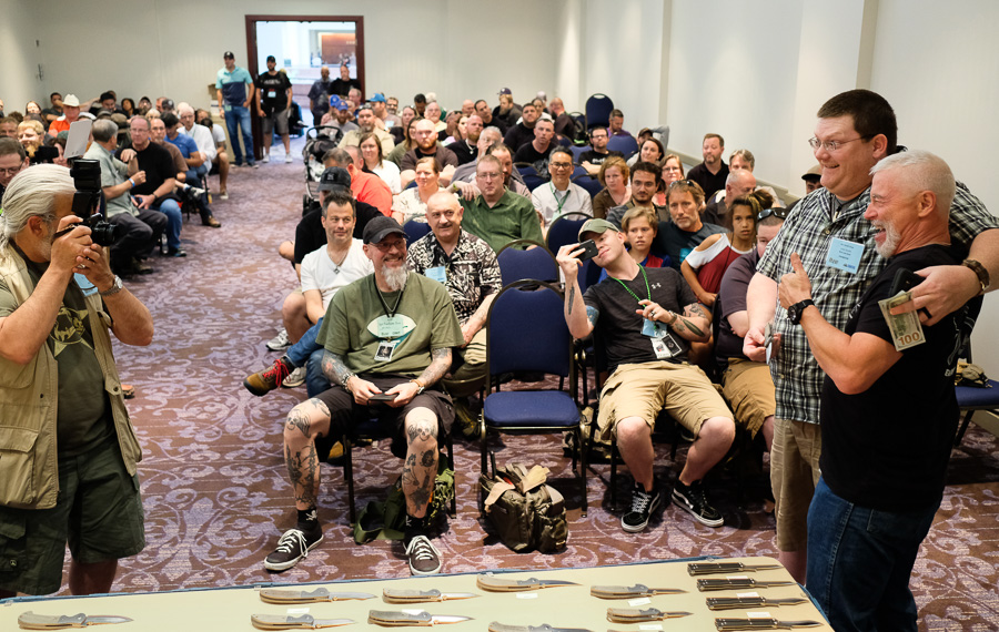 One of the key events during Blade Show is the Emerson Lottery, where you can win a chance to buy a custom Emerson knife. While your chances of winning are bigger than the lottery, (about 50 knives and hundreds of people looking for a chance, most of them outside the room) it’s still far from guaranteed you’ll get one.