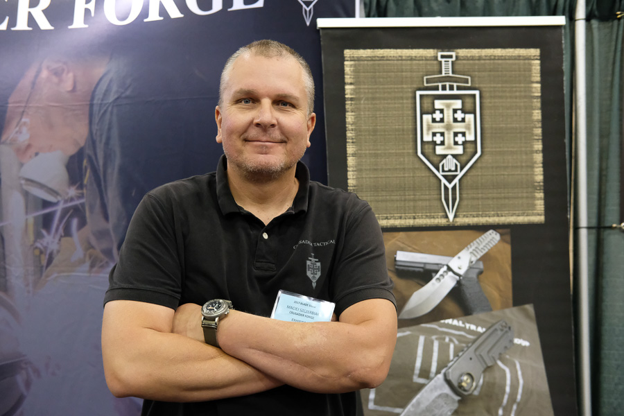 Crusader Forge is a maker of hardcore overbuilt knives. He’s also making official knives for Oberland Arms.