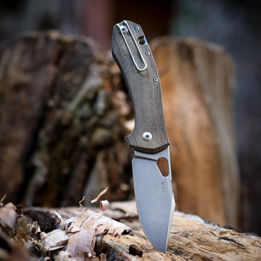 The blade comes scary sharp from the factory and cuts at the slightest touch. The grinds are flat and high, so the blade glides through most materials. I’m a big fan of the Spyderco-style round hole, but the teardrop shape of the Grand’s works equally well and is big enough for use with gloves. Overall, the blade of the ACE Grand is a winner, just like the GM5.